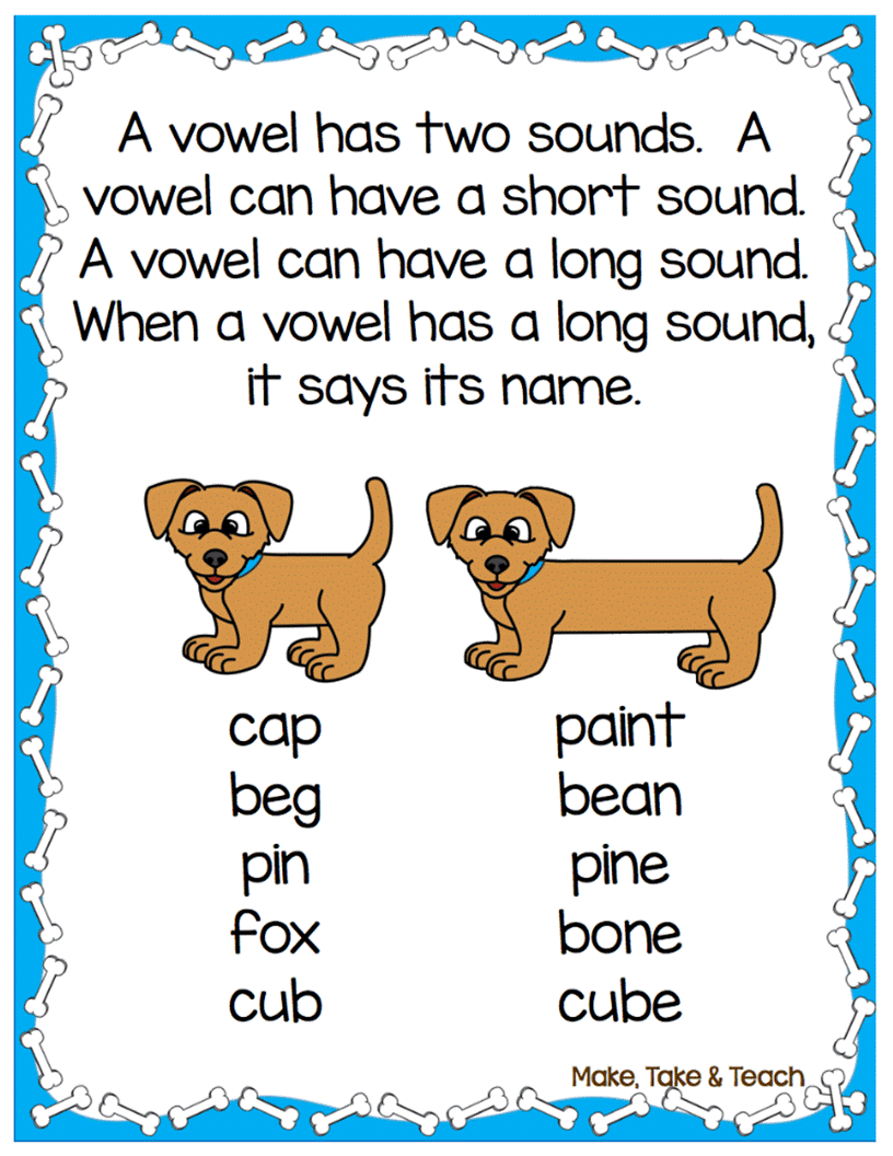 Learning vowel sounds can be so tricky for our young readers. Not only do several of the short vowel sounds sound similar (for example, the short /a/ and short /e/ sounds), but vowels have two sounds– a short sound and a long sound. Teaching students that vowels have two sounds is typically introduced early in first grade. The explanation is actually quite simple. We just tell students that when a vowel has a long sound, it says its name. Having this poster handy while teaching this concept can be helpful. Just click the link below for a quick and easy download. Just click the following link to download this freebie Long and Short Vowels Poster For our little first graders, I