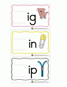 5. Weave the corresponding letter strips though the slits. The colors of the strips should match the card and the word family is typed toward the bottom.