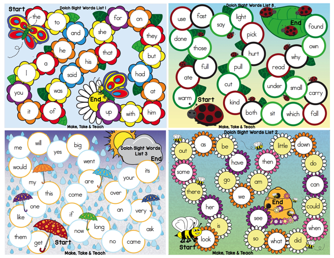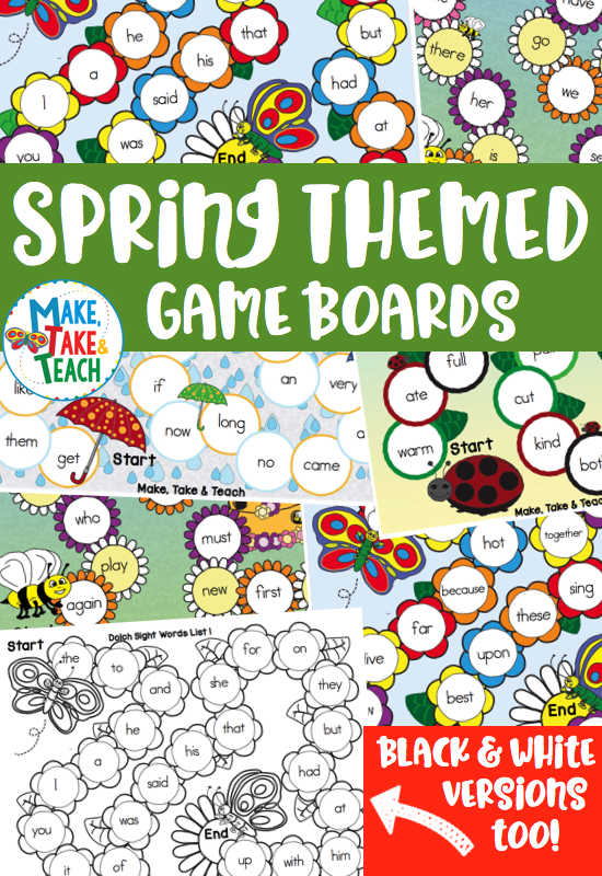 The Spring Themed Game Boards for the Dolch Sight Words can be found in my online Teachers Pay Teachers store or through the Make, Take & Teach website.